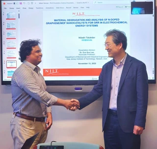 Photo credit: Rakina Islam.During my Ph.D. research, I had the opportunity to explore a fascinating area of materials science: the development of nitrogen-doped graphene (N-G) and N-G/MOF nanocatalysts as sustainable alternatives to precious metal catalysts for electrochemical energy systems. My dissertation, titled “Material Degradation and Analysis of N-Doped Graphene/MOF Nanocatalysts for ORR in Electrochemical Energy Systems,” focuses on understanding how these advanced carbon-based materials behave during catalytic reactions.