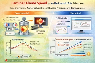 Laminar flame speeds of n-butanol/air premixed flames were measured experimentally and numerically at elevated pressures and temperatures for a wide range of equivalence ratios. Laminar flame speeds were obtained experimentally from the temporal evaluation of the flame front of spherically outwardly propagating flames at zero stress rate. The shadowgraph technique was employed to gain optical access to the constant volume combustion chamber. Flame propagation images were captured by a high-speed camera and MATLAB codes were used to process the images and calculate laminar flame speeds. Flame speeds have been calculated numerically using CHEMKIN-Pro based on a short reaction mechanism for n-butanol oxidation, which was derived from a previously published full reaction mechanism. Numerical predictions were in qualitative agreement with experimental data. The effects of initial pressure and temperature elevation were analyzed. Also, the effect of simultaneous elevation of initial pressures and temperatures is documented. For all experimental conditions, the maximum flame speed was found at around equivalence ratio 1.1. In general, flame speeds decreased with the elevation of initial pressure and increased with initial temperature elevation.